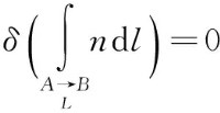 費馬原理表述成[5]:兩點之間的真實光線是所走光程相對于路徑的變分為平穩的那一條,數學描述如式(1)和圖1。