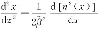 應用費馬原理,還可以得到彎曲光線尋跡的定量描述(即光線傳輸所遵循的方程)——光線方程(公式(2))。這里假定z軸為傍軸光線的主傳播方向,而傳輸光線的媒質假定只在x方向變化[5]