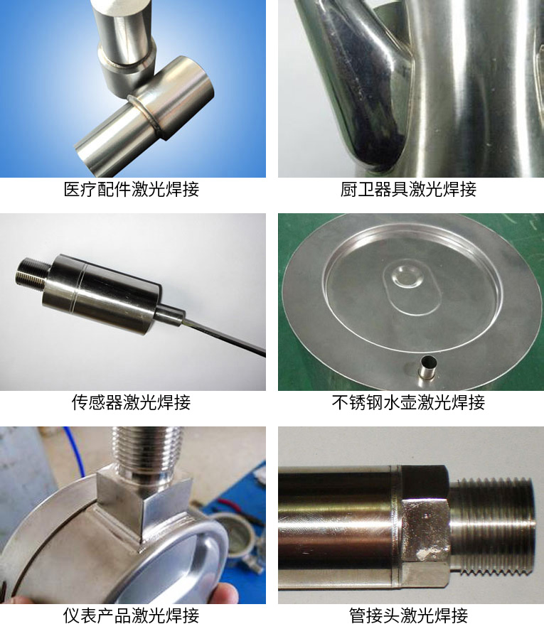 現(xiàn)廣泛應(yīng)用的領(lǐng)域有手機外殼、筆記本電腦外殼、五金構(gòu)件、廚具衛(wèi)浴、軍工制造、電池外殼、動力電池、儀器儀表、馬達、IT手機構(gòu)件、硅鋼片、汽車配件、激光熔覆、醫(yī)療器械等精密零件焊接。