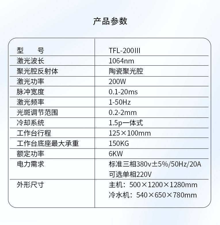 TFL-200Ⅲ型模具激光焊機是通發(fā)激光公司在TFL-180Ⅲ的基礎進行了改良,采用通發(fā)自主研發(fā)的二代精密單燈電源為燈泵浦驅(qū)動電源,配置觸摸屏,操作更方便。主機具備激光頭手搖升降與工作臺按鈕電動升降實現(xiàn)焊接不同厚度模具的激光焊加工。本款機型更適用于各類高精密注塑模具激光補焊,精密塑膠模具零件激光修補,塑膠模具鈹銅零件激光燒焊;可對模具使用過程中出現(xiàn)的磨損進行激光修復;對機械加工失誤、電火花加工失誤,模具減膠設計變更等需要對模具修改,起到關鍵的作用,可彌補因加工失誤造成的巨大損失。
