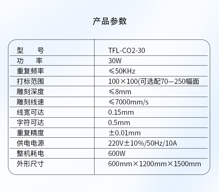通發激光研發TFL-CO2-30非金屬激光打標機,是皮革激光打標、木材激光打標、石材激光雕刻、硅膠激光鐳雕等非金屬專用的二氧化碳激光鐳雕設備,本二氧化碳激光鐳雕機配置進口射頻激光器等高端器件,性能穩定!!!