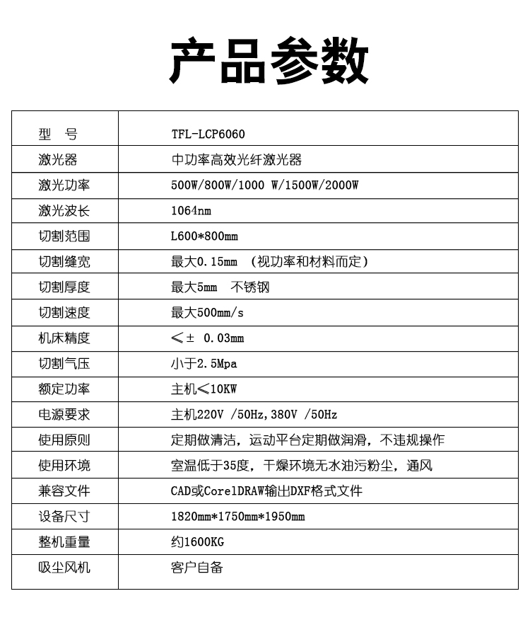 激光功率 | 500W/800W/1000 W/1500W/2000W |